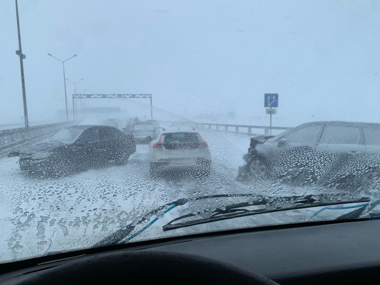 Очевидцы в телеграм-канале «Мегаполис» сообщают, что из-за метели видимость на дамбе — «на вытянутую руку». Одним из участников аварии, по их данным, стал автобус. Информации по пострадавшим не поступало, добавили в Дирекции КЗС.
