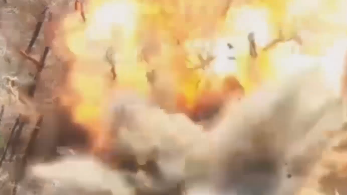 На кадрах видно, как робот подъезжает к блиндажу, заезжает внутрь и взрывает его изнутри. В ведомстве сообщили, что на кадрах — взрыв опорного пункта ВСУ на Краснолиманском направлении.