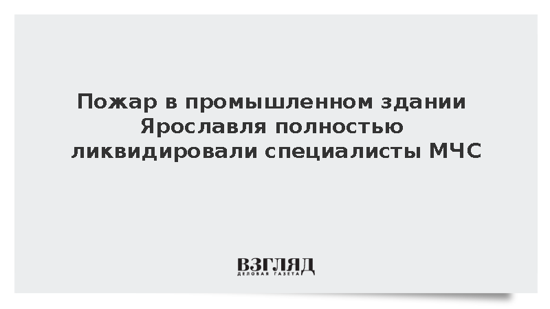 Открытое горение в производственном здании Ярославля было полностью ликвидировано, передает ТАСС. Об этом сообщили в телеграм-канале МЧС России.