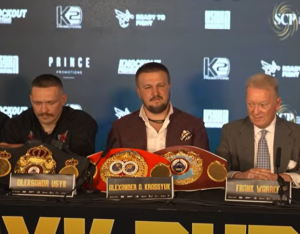 Украинец завоевал все три титула благодаря победе по очкам над британцем Энтони Джошуа в сентябре 2021 года. В августе 2022 года состоялся их реванш, и Александр снова превзошёл Джошуа решением судей.