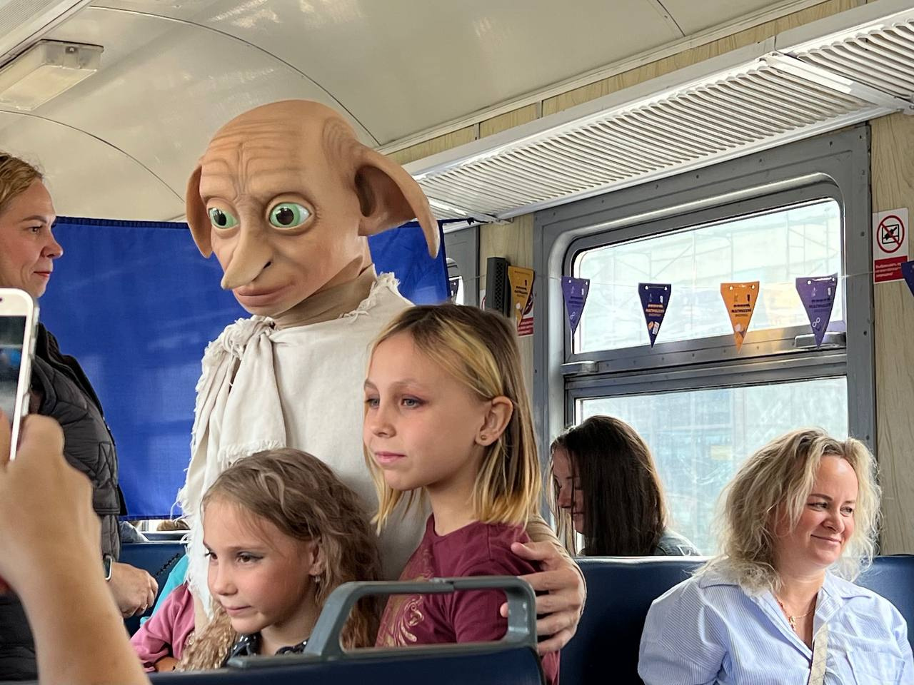 В поезде будущих волшебников ждали преподаватели и ученики Хогвартса и, конечно же, директор школы Дамблдор. В руках у него была распределительная шляпа: будущих волшебников направили по факультетам и начали обучать магии.