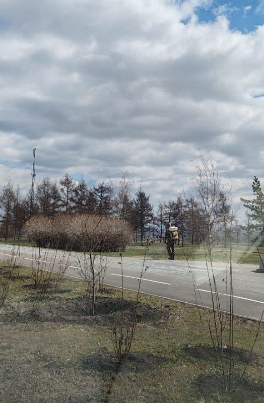 Специальные препараты уже нанесли на участок за домом № 28 на Сергея Лазо, вдоль пешеходной дорожки к школе по улице Одесской и на «Зелёном берегу».