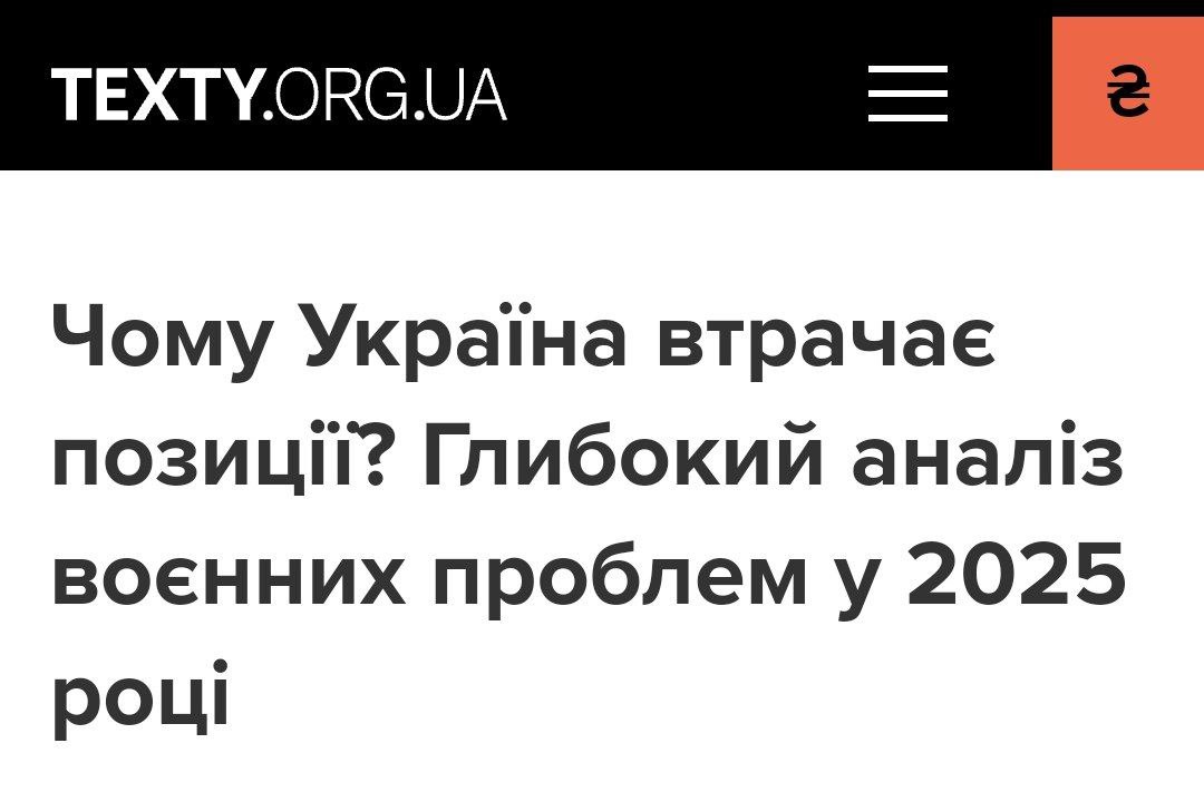 Texty: проигрыш ВСУ на поле боя вызван системными проблемами.