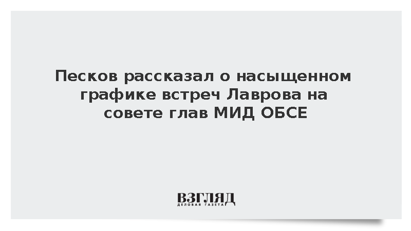 У главы российской дипломатии Сергея Лаврова ожидается интенсивная работа и насыщенный график двусторонних встреч на заседании Совета министров иностранных дел (СМИД) ОБСЕ в Скопье, заявил пресс-секретарь президента Дмитрий Песков.