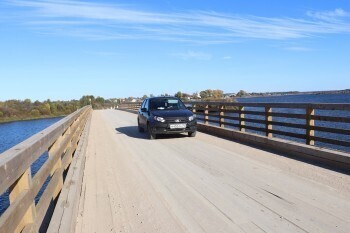 Представитель заказчика Николай Бусел проверил выполнение работ во вторник, 30 сентября. Переправа готова на 86 %, серьезных замечаний нет, отметил он. Основные работы выполнены, по мосту открыто движение транспорта и пешеходов.