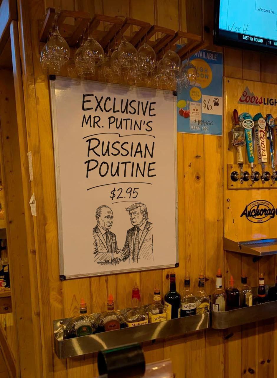 В баре города Гирдвуд на Аляске, где может состояться встреча Трампа и Путина, ввели «эксклюзивное блюдо мистера Путина». Канадское блюдо Poutine – местная разновидность картошки фри с соусом.