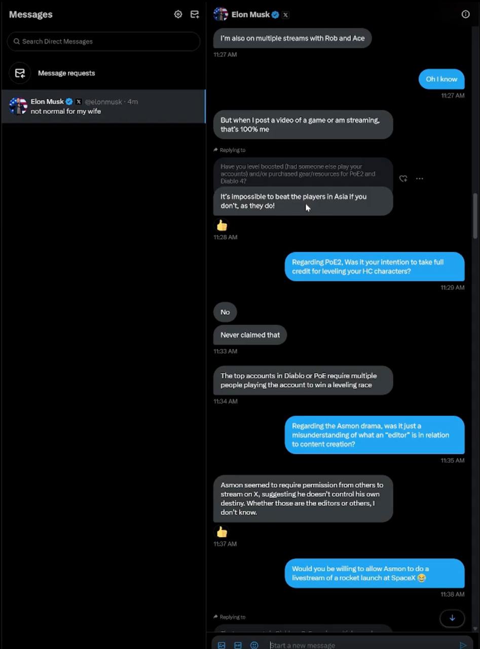 Ранее Маск уже признавался в переписке, что пользуется услугами по прокачке персонажей и считает, что «невозможно побеждать игроков из Азии, не прибегая к подобного рода услугам». Также он утверждает, что на всех топовых аккаунтах сидит несколько игроков.