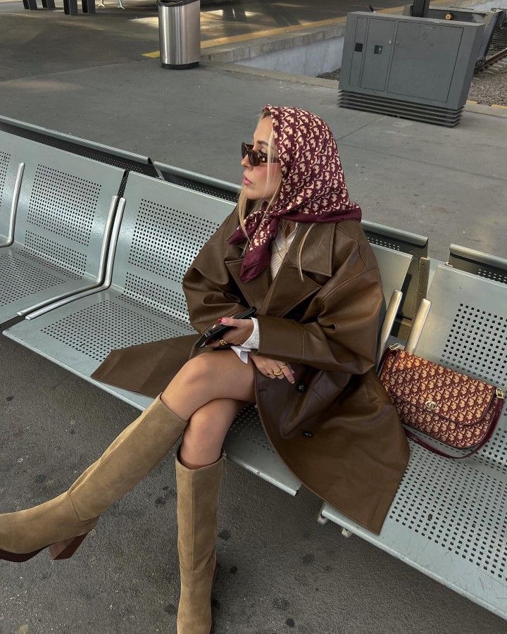Косынки остались с нами с летнего сезона, когда модные инфлюенсеры носили шелковые варианты в сочетании с кепкой, и теперь готовы стать стильной альтернативой шапкам и шарфам. В более прохладную погоду выбираем утепленные модели, например, кожаные или из натуральной шерсти. Фэшн-блогеры советуют обращать внимание на яркие и акцентные варианты, которые легко стилизовать с любой верхней одеждой в базовых оттенках. Смотри, как стильно носить косынки и сохраняй себе на заметку.