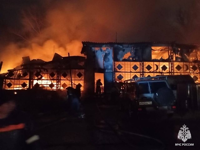 В Новоалександровке накануне вечером загорелся ангар с резиной и пластмассовыми изделиями на площади 350 квадратных метров.