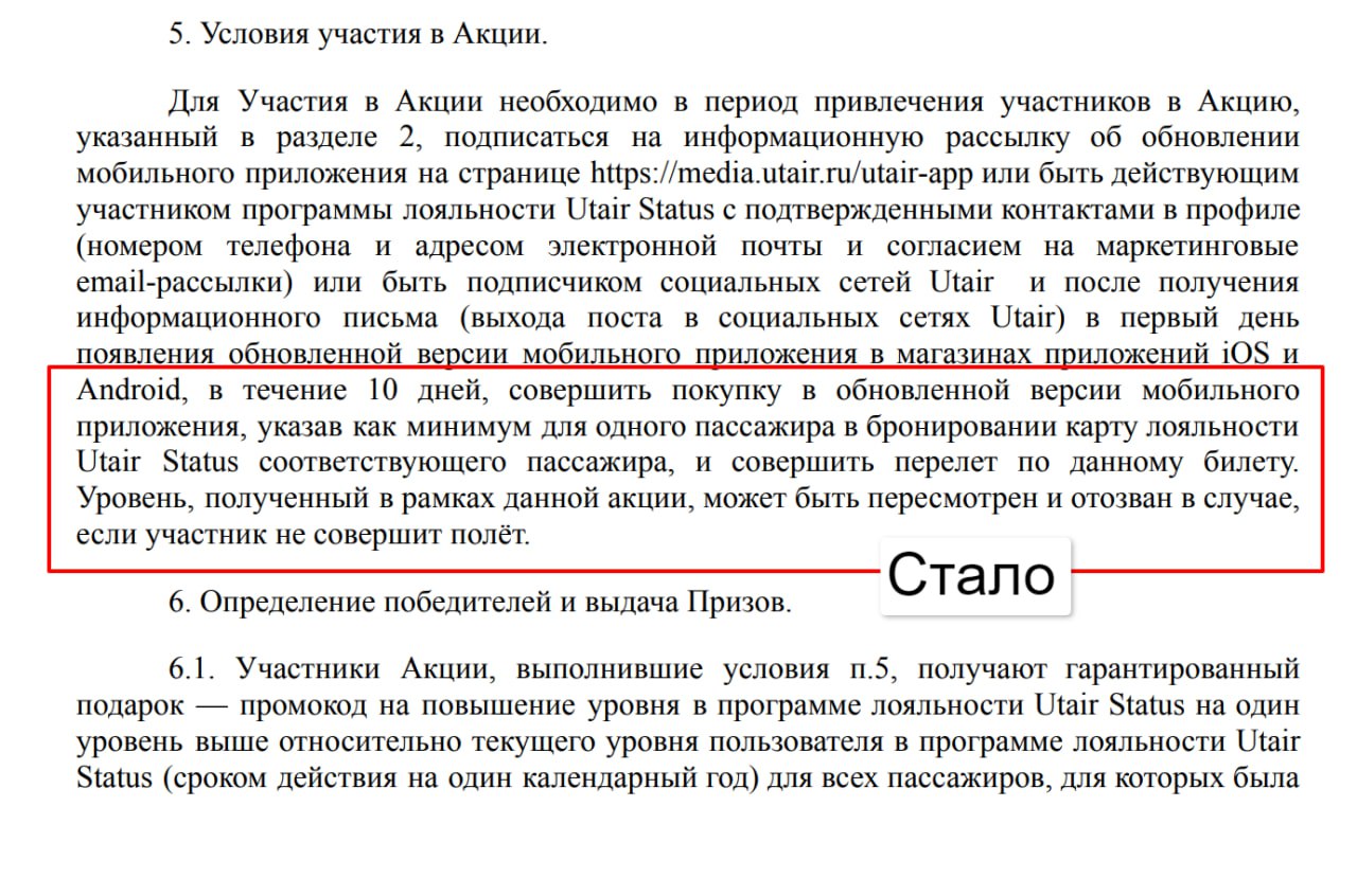 За статус придется лететь — «Ютэйр» спустя два часа после нашей публикации добавили поправки в свои правила: нужно не просто купить билеты, но и воспользоваться ими. Вот старая версия, а вот новая.