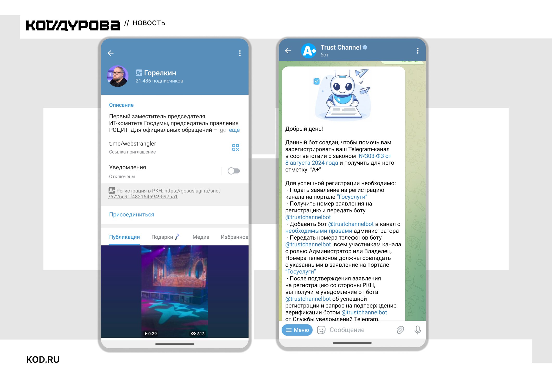 Теперь все зарегистрированные в реестре Роскомнадзора каналы могут воспользоваться ботом @Trustchannelbot для получения отметки A+ рядом с названием канала. Владельцу канала потребуется предоставить номера телефонов всех администраторов канала.