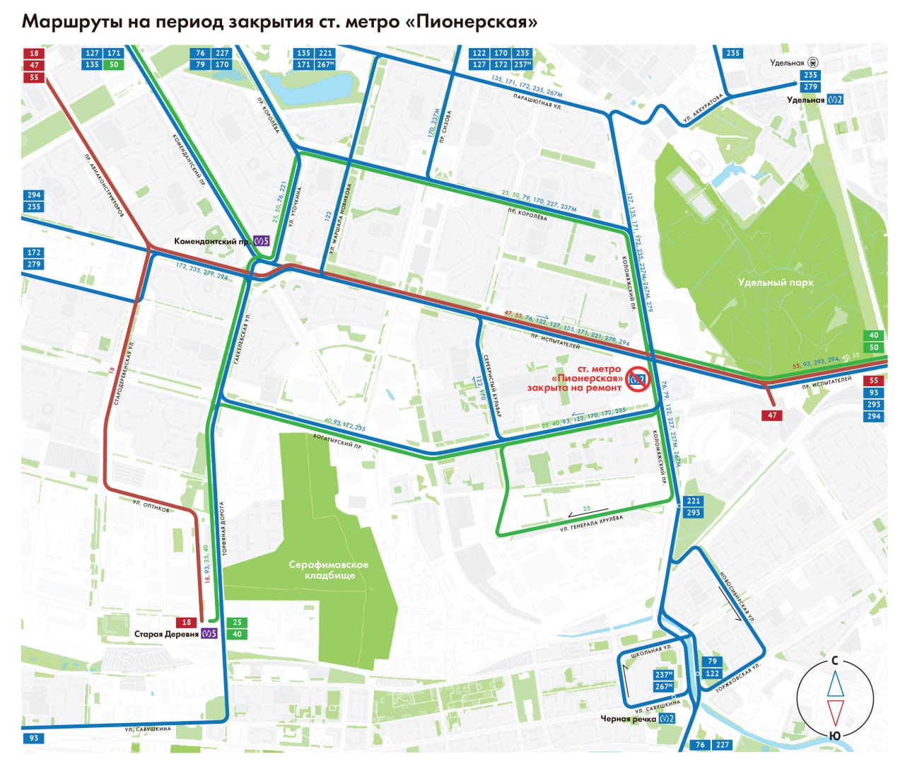 В преддверии закрытия на капитальный ремонт станции метро «Пионерская» комитет по транспорту Петербурга запускает два наземных маршрута общественного транспорта. Всего же во время работ пассажиров будут обслуживать три десятка маршрутов.