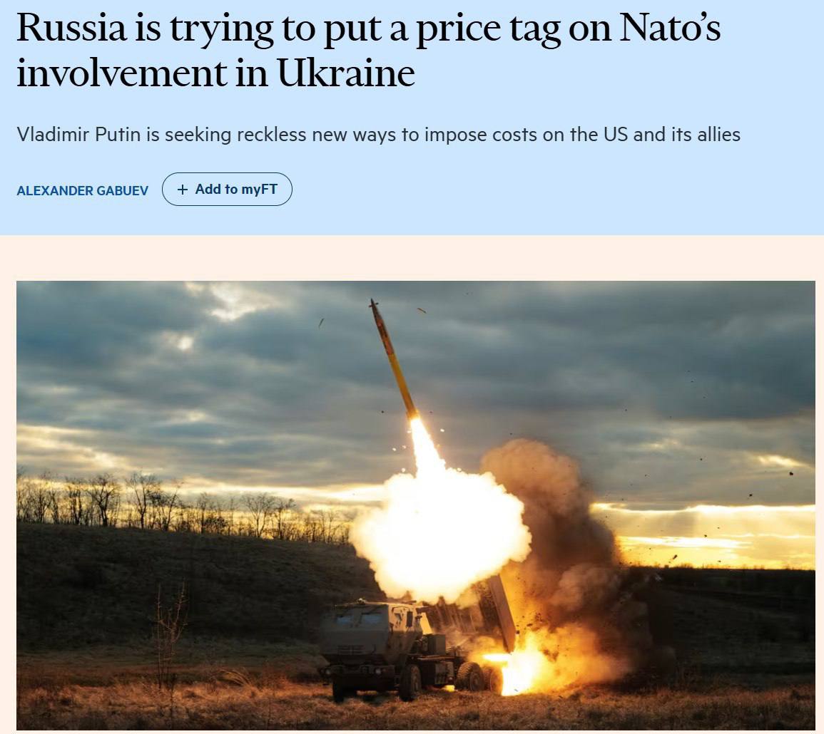 3) Он отмечает "растущее участие НАТО в войне" и пишет, что это побуждает Путина "действовать смелее".