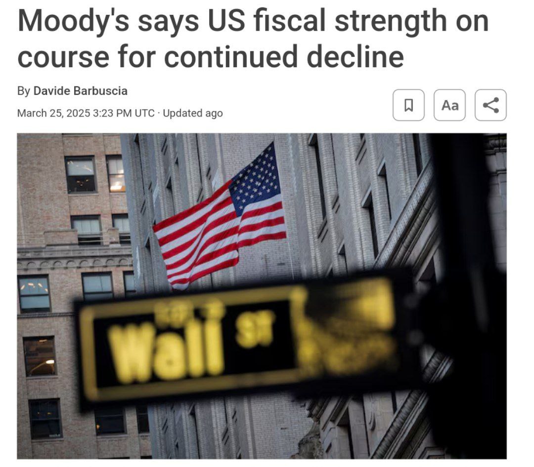 В отчете агентства говорится, что финансовое положение страны ухудшилось после того, как в ноябре 2023 года агентство Moody's понизило прогноз по рейтингу США до AAA. Агентство играет за демократов и против Трампа. https://t.me/banksta/53980