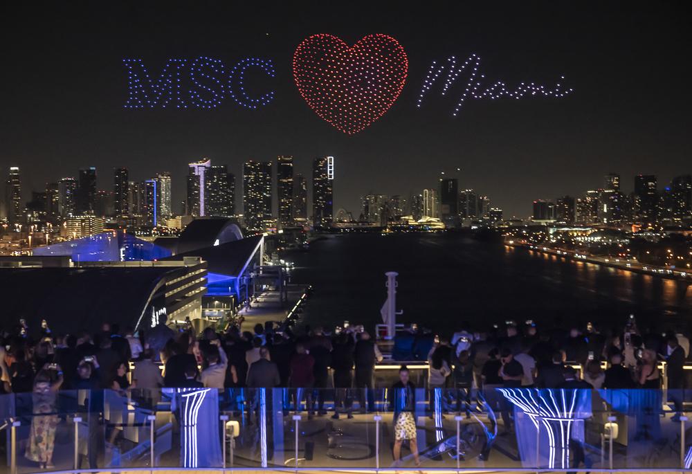 En attendant, c’est devant un parterre de «very important passengers», journalistes, influenceurs et invités, que s’est tenue une cérémonie aux airs de finale du Superbowl. Lancée sur un hymne américain, tonitrué a cappella devant une salle debout - ledit locataire de la Maison-Blanche aurait apprécié. Et achevée sur un spectacle de drones dans le ciel de Miami. Entre-temps, la scène du théâtre aura vu défiler toutes les huiles de la croisière locale - rappelons que Miami est la capitale mondiale de cette industrie, de la maire du comté, Daniella Levine Cava, au PDG du groupe Diego Aponte, en passant par son numéro deux, Pierfrancesco Vago.
