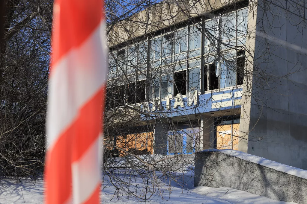 Вокруг аварийного здания кинотеатра "Алтай" в ближайшее время появится забор. Здесь уже поставили столбы и закрепили сигнальные ленты. Сейчас идет подготовка к работам по демонтажу здания постройки советского времени.