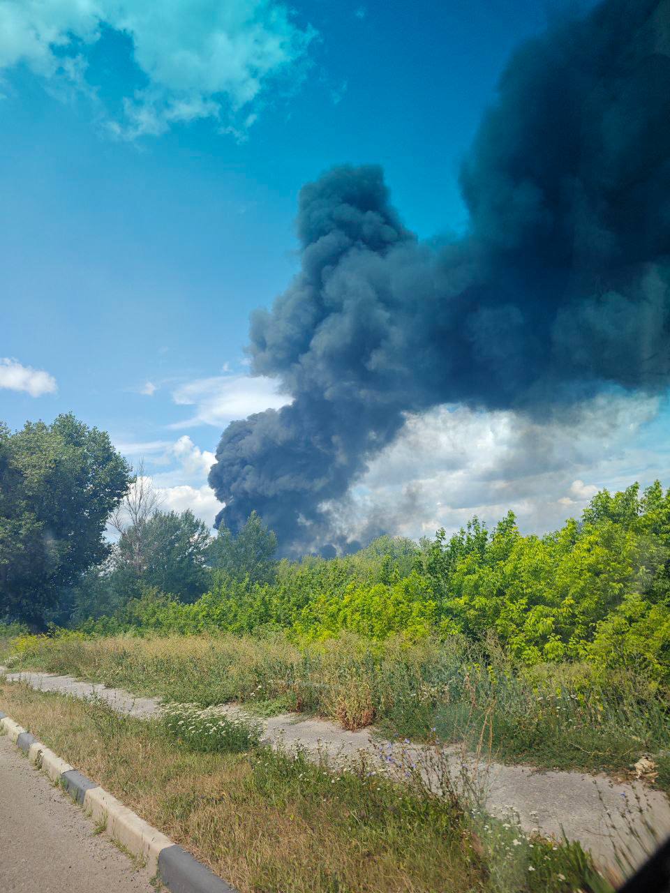 В Шебекинском городском округе в селе Вознесеновка в результате атаки беспилотника горит битум на территории производственной площадки.