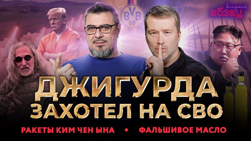 Наш Rutube https://rutube.ru/u/absatzmedia =========== «Вечерний Абзац» с Павлом Русским и Александром Бордиком. Джигурда захотел на СВО, Рейнметалл стал спонсором «Боруссии», Ракеты Ким Чен Ына. Эксперты эфира: ✔️Виталий Милонов – депутат Государственной думы. ✔️Алексей Егармин – сопредседатель..
