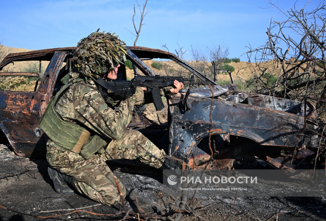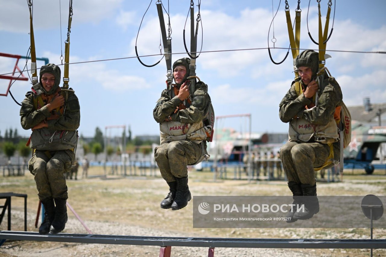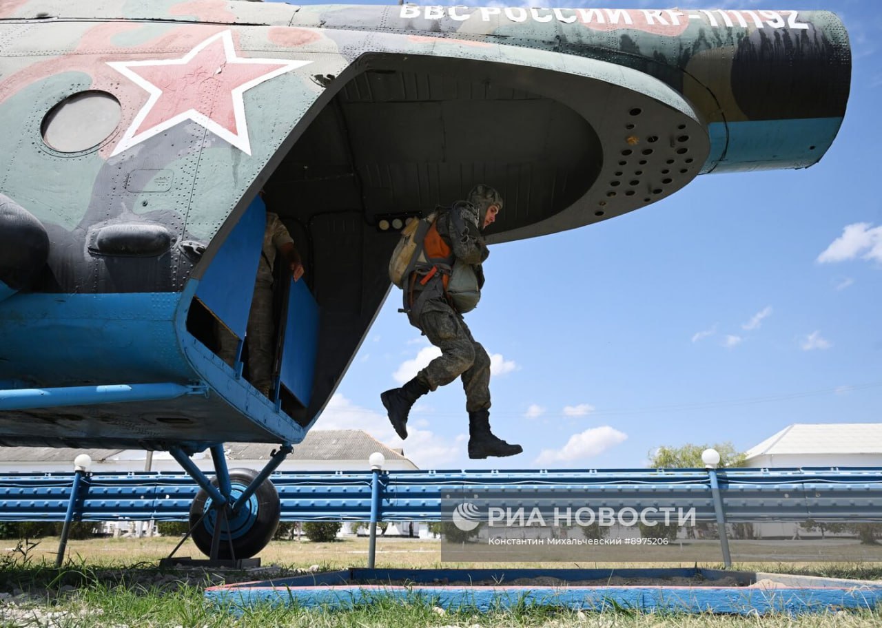 Военнослужащие 56-го гвардейского десантно-штурмового полка ВС РФ во время подготовки, посвященной 95-й годовщине со дня образования Воздушно-десантных войск.