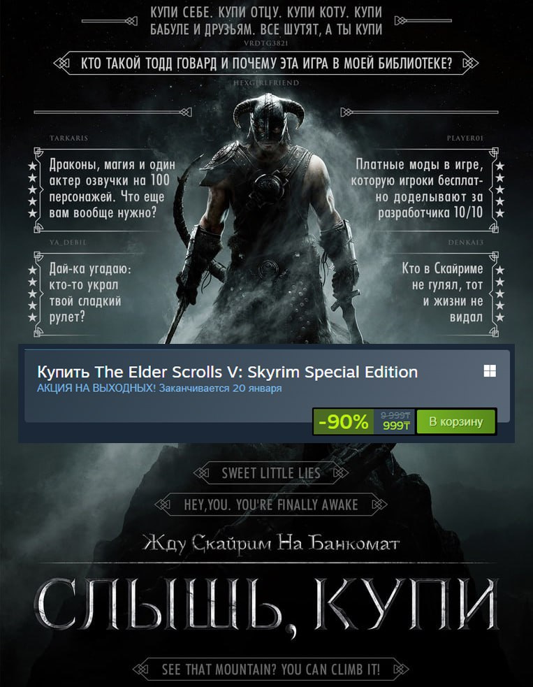 Слышь, купи: The Elder Scrolls V: Skyrim SE получил самую большую скидку в 90%