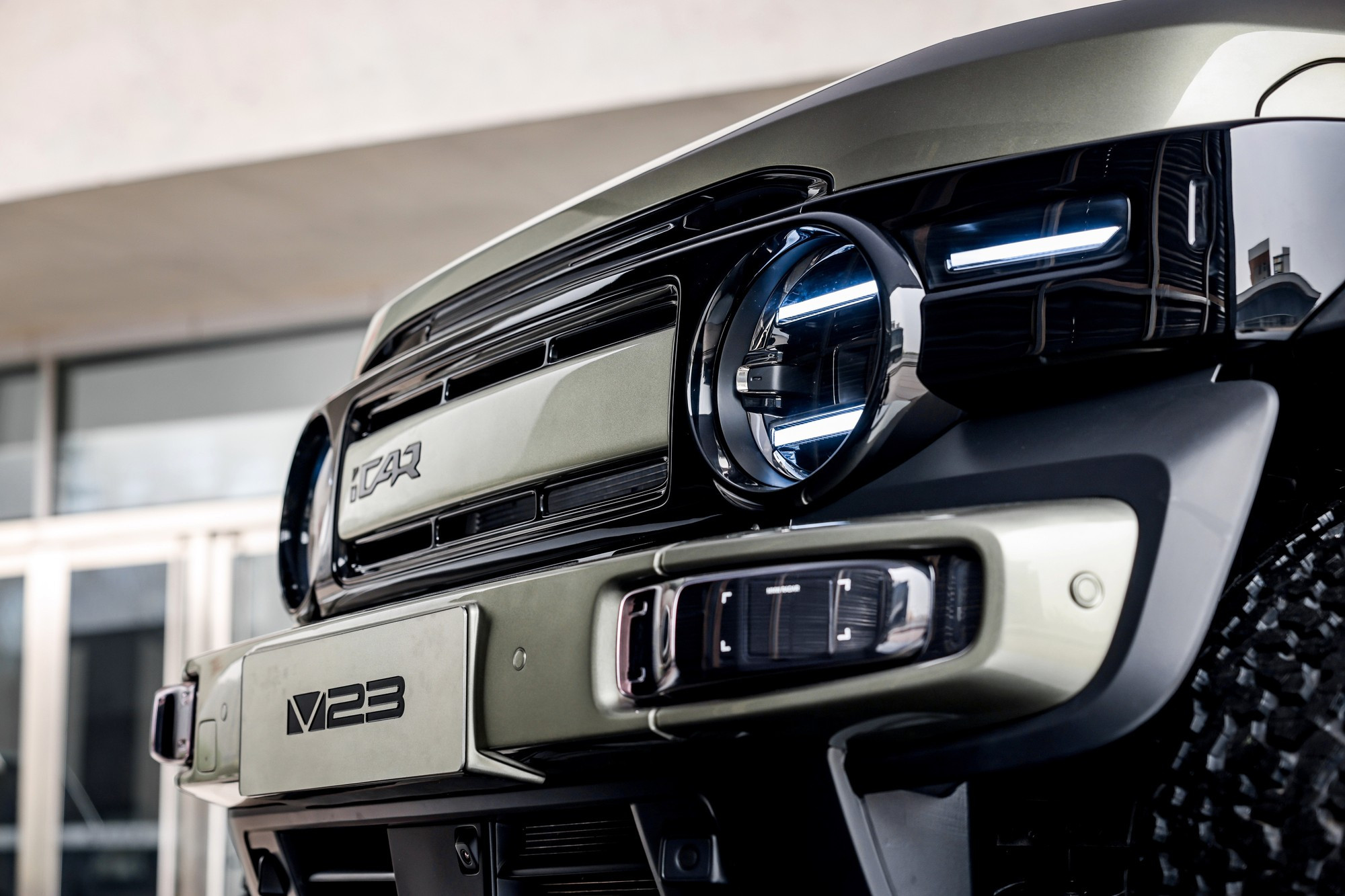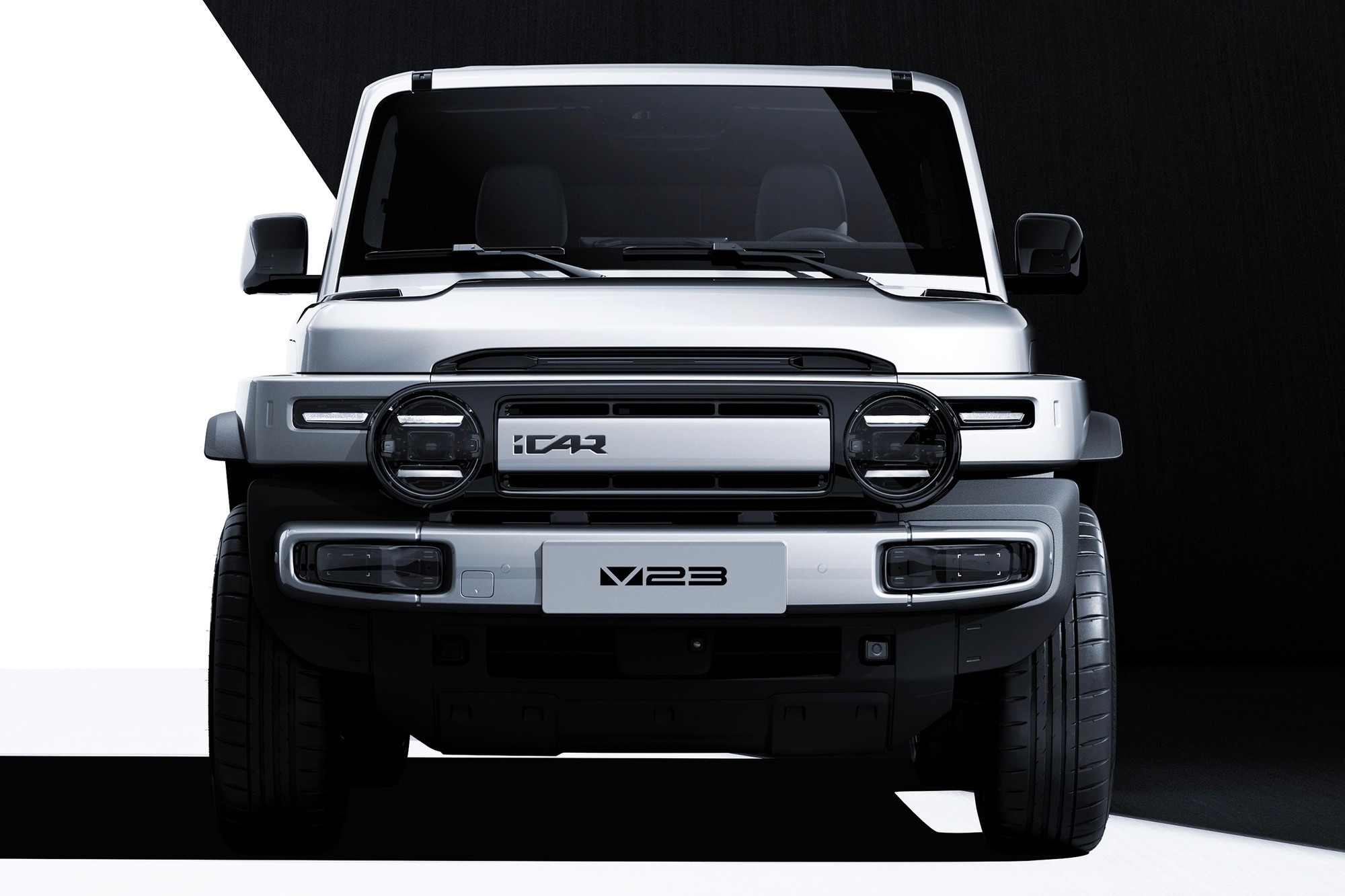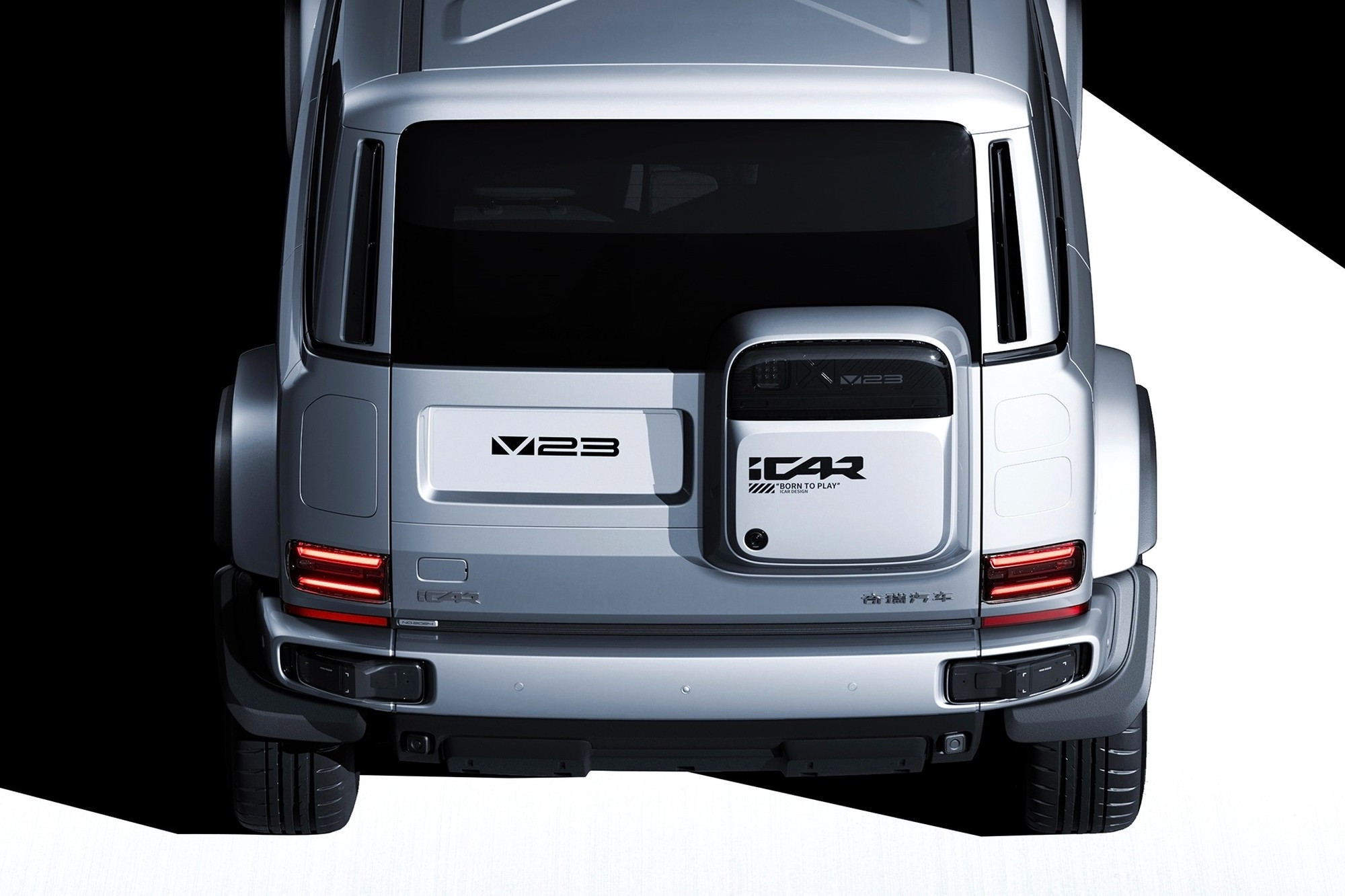 Бренд iCar адресован молодым горожанам, любящим зависать в соцсетях, но при этом готовым в любой момент отправиться с друзьями на отдых за город. Эмблему iCar в виде буквы «i» разработал Цао Сюэ — автор талисмана (панды) зимних Олимпийских игр в Пекине 2022 года. В облике iCar V23 буква «i» нашла отражение в форме декоративных накладок под поворотниками на передних крыльях. В целом же дизайн iCar V23 — это сборник цитат легендарных внедорожников: в китайской машине можно увидеть черты Land Rover Defender, Jeep Wrangler, Mercedes-Benz G-класса и Toyota Land Cruiser J40.