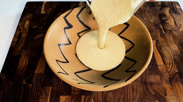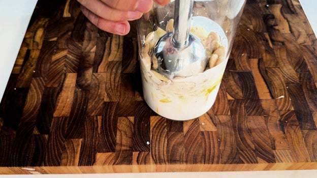 Se tritura el conjunto hasta que quede una crema homogénea y se pasa a un bol o plato hondo.
