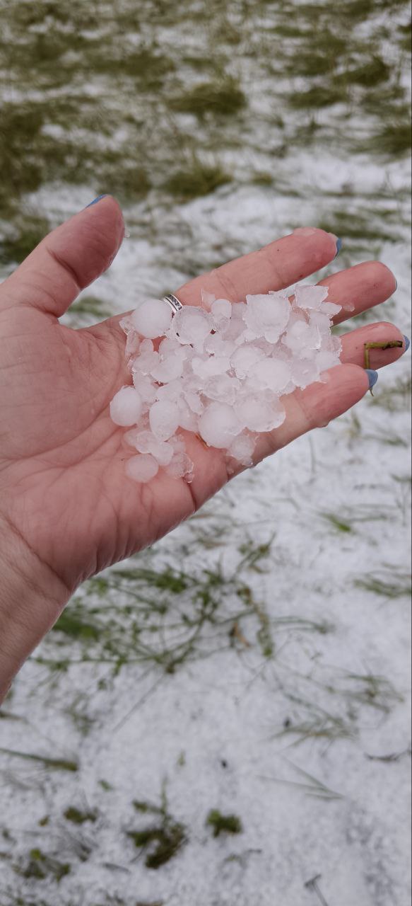Сугробы в августе: недалеко от Магнитогорска выпал град, сообщают подписчики RT.