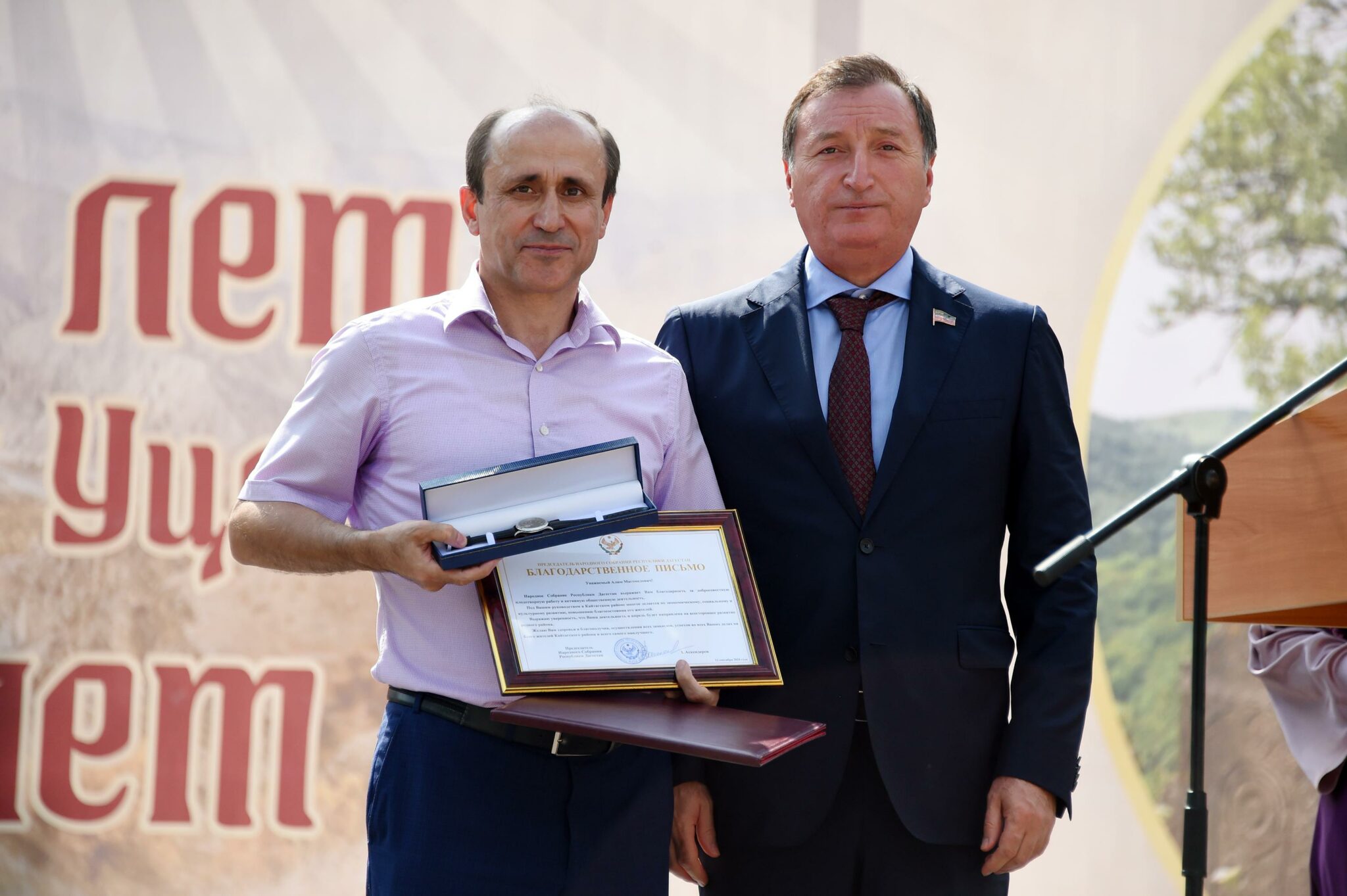 «Уважаемые жители Кайтагского района! Примите искренние поздравления с 95-летием со дня образования района! Кайтагский район – один из красивейших уголков Дагестана, сочетающих легендарную историю, богатейшее наследие и потрясающие природные красоты. Здесь почти в каждом селе можно обнаружить следы судьбоносных сражений, оставленных предками в назидание будущим поколениям. Уникальные достопримечательности, открывающиеся с вершин, позволяют нам лучше понять, чем манила эта земля многочисленных иноземных захватчиков и почему ее так яростно защищали кайтагцы от любого посягательства. А бесценные образцы Кайтагской вышивки и сегодня по праву являются оберегами дагестанской культуры. И конечно, самое главное богатство района – это трудолюбивые, гостеприимные, талантливые, светлые духом жители, готовые справиться с вызовами времени. Среди кайтагцев немало людей, которые свои мужеством и отвагой в годы войны, самоотверженным трудом в мирное время прославили район. И сегодня эти традиции достойно продолжают ваши земляки в зоне специальной военной операции, решая поставленные Руководством страны задачи по защите Отечества. Кайтагская земля вырастила целую плеяду талантливых ученых: политиков, врачей, педагогов, деятелей искусства, культуры и спорта, прославивших родной Дагестан на весь мир. Важно, чтобы и дальше каждый из нас осознавал свою причастность к судьбе родного края, жил и работал на благо Родины. Убежден, что совместными усилиями нам удастся выработать эффективные меры по решению наболевших проблем, тем самым способствуя повышению уровня жизни людей. Хочу пожелать, чтобы у жителей Кайтагского района впереди было множество хороших и добрых юбилеев, радостных и знаковых событий, крепкого здоровья, счастья и благополучия, новых побед и процветаний! Пусть в ваших домах всегда будет мир, тепло и уют!» — говорилось в послании.
