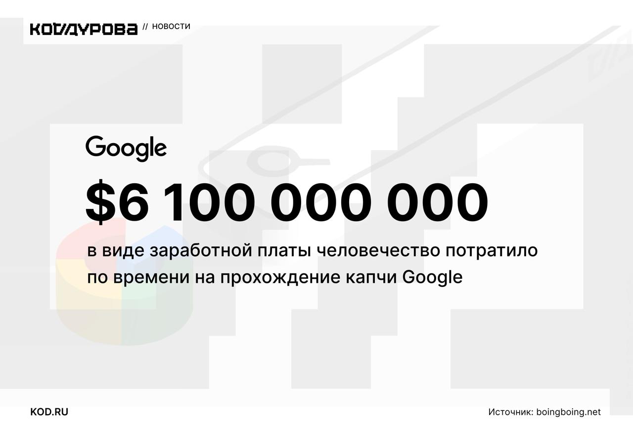 Исследователи выяснили, что на прохождение капчи от Google пользователи потратили 819 млн часов или более 6 млрд долларов в утраченных зарплатах.