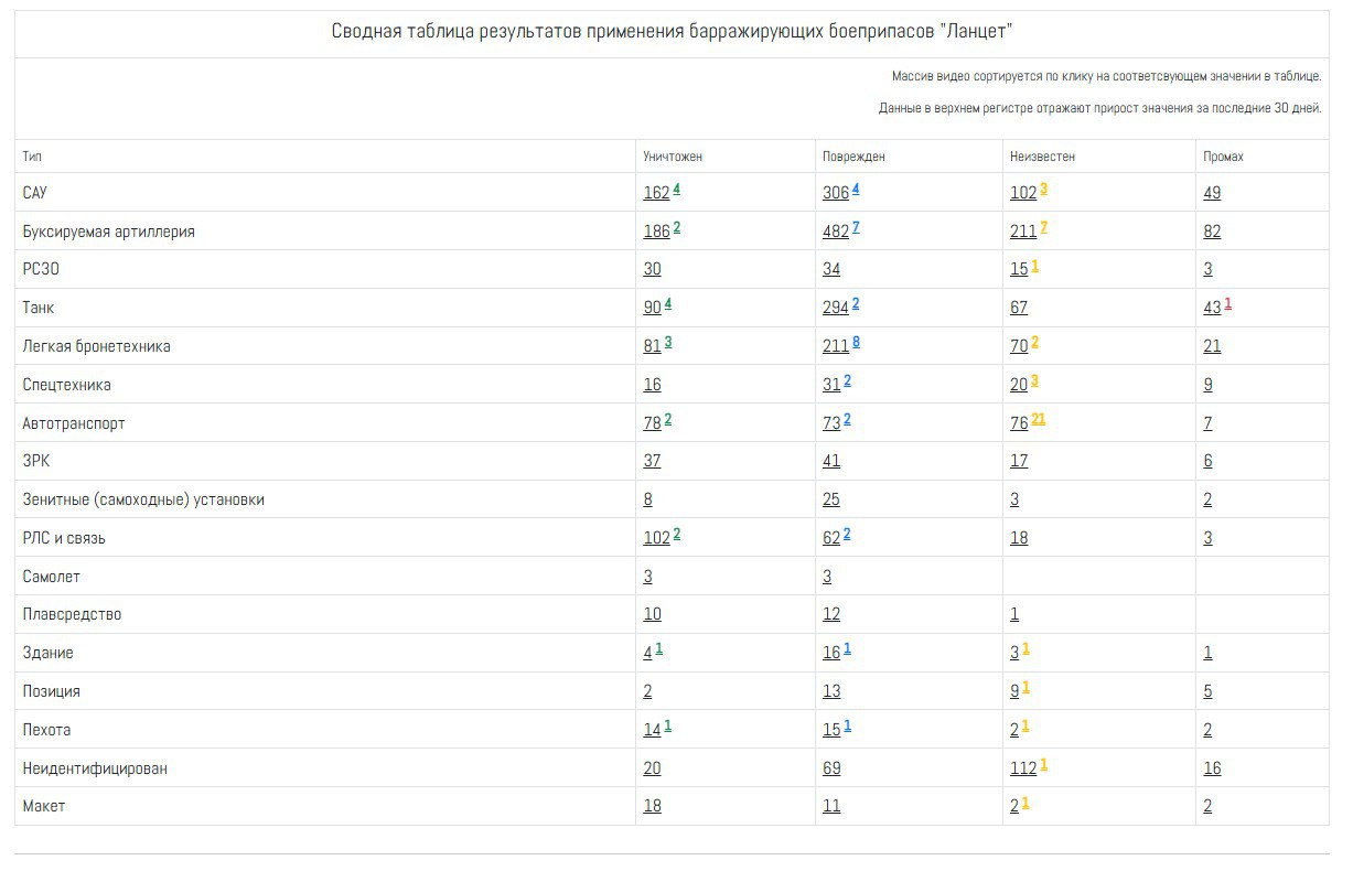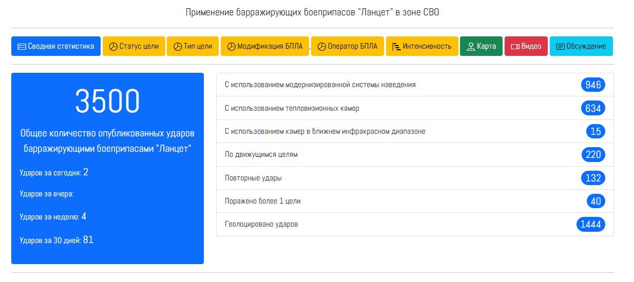Количество опубликованных применений барражирующих боеприпасов "Ланцет" в зоне СВО достигло 3500!