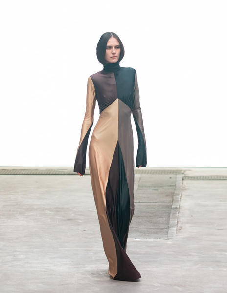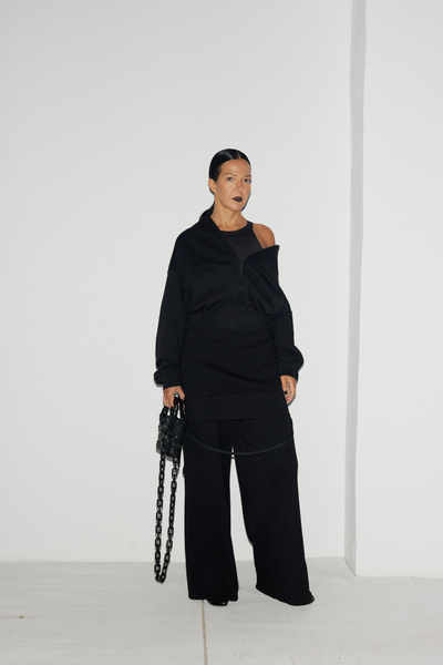Также в коллекцию вошли флагманские модели, впервые показанные на Международной недели моды Visa Fashion Week Almaty (VFWA): анатомические платья из лайкры, вещи с принтом на грузинском языке, пальто с гипертрофированными плечами из экокожи, платье из полупрозрачного трикотажа с длинным шлейфом.