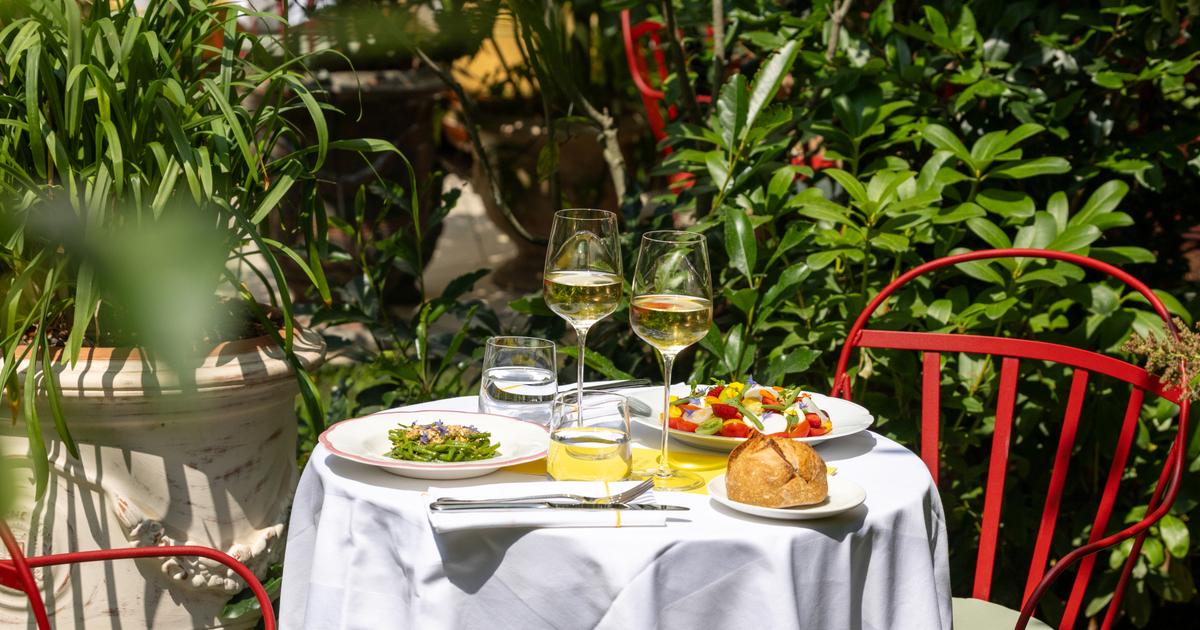 La carte se montre plus intéressante avec une salade de crabe (30€) ou une salade de haricots verts, feta et pêche très estivale et relativement copieuse (21€). En plat, cabillaud (cuisson parfaite), fèves et petits pois (35€). L’artichaut farci avec ses petits légumes ne manque pas d’arguments (24€). En dessert, on choisit la pêche et granité au rosé Léoube : simplement rafraîchissant (12€).
