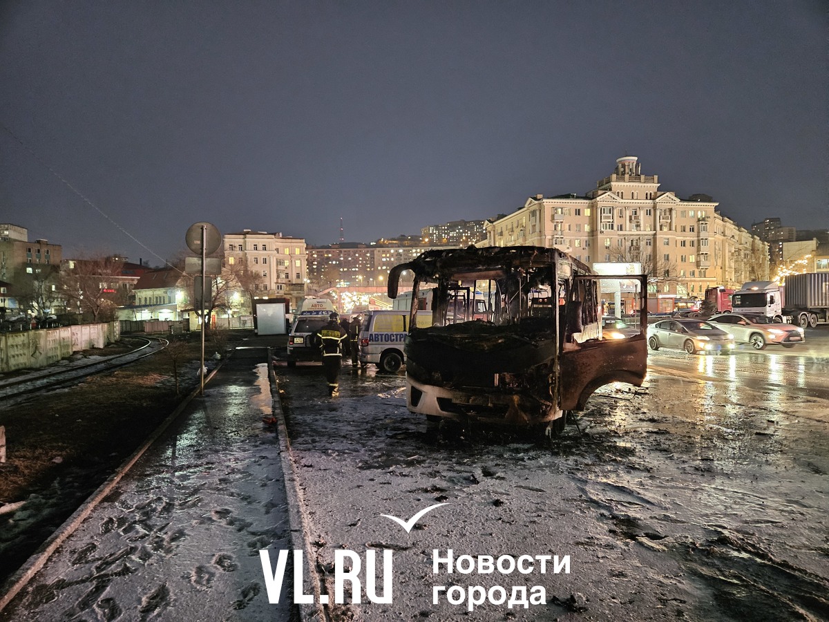 19:22: Корреспондент Новостей VL.ru с места сообщает, что возгорание началось, судя по всему, с отсека двигателя. Передняя часть пострадала сильнее всего. Полностью выгорел также и салон. Пожарные осматривают машину. По предварительным данным пострадавших нет – либо автобус был без пассажиров, либо они успели выйти.