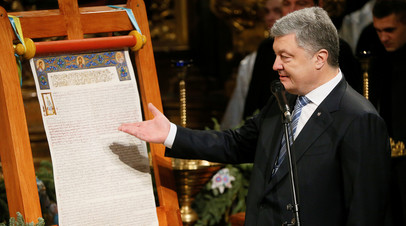 Напомним, 15 декабря 2018 года украинское руководство провело так называемый объединительный собор. На нём было провозглашено создание Православной церкви Украины. В начале января 2019 года патриарх Варфоломей подписал томос (указ) о её автокефалии.