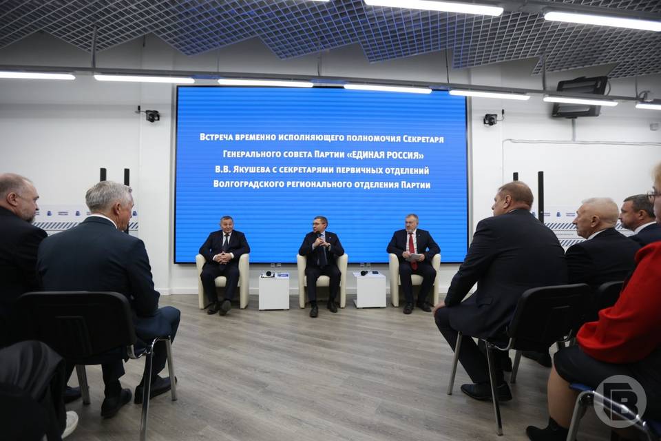 Сегодня, 12 ноября, губернатор Волгоградской области Андрей Бочаров и врио секретаря Генсовета «Единой России», первый вице-спикер Совета Федерации РФ Владимир Якушев встретились с секретарями первичек волгоградского реготделения единороссов. Площадкой для встречи стал штаб общественной поддержки, расположенный в амфитеатре на нижней террасе волгоградской набережной.
