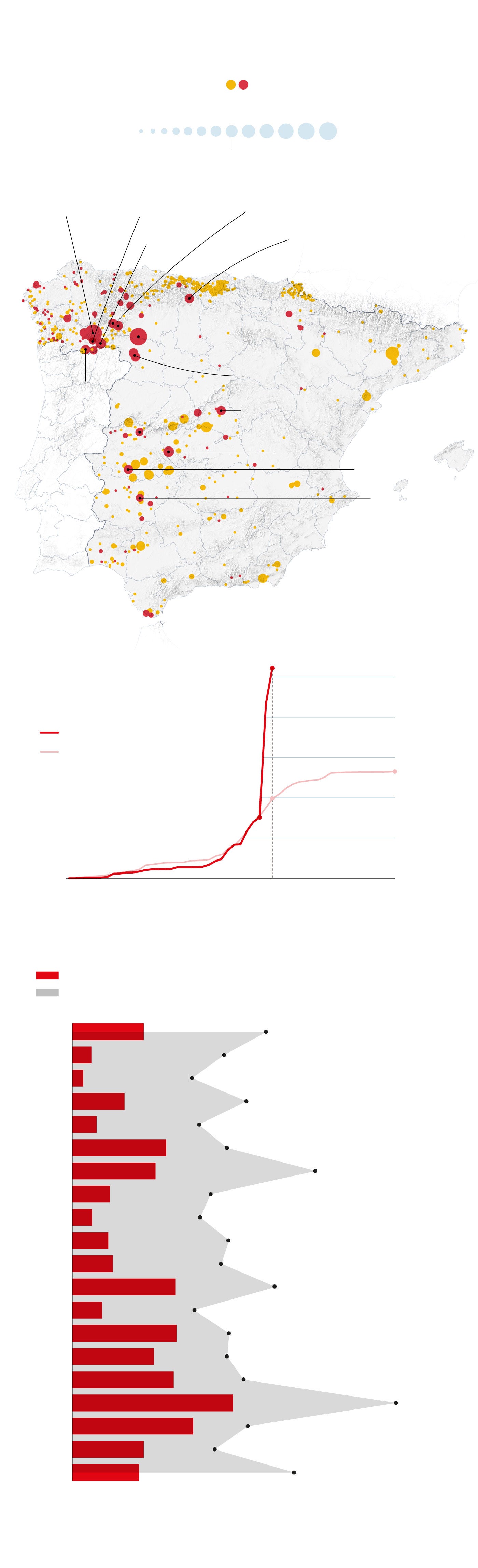 Además de ese primer incendio de Molezuelas de la Carballeda, en Zamora, que se extendió hacia León vía Uña de Quintana, Cubo de Benavente, Congosta de Vidriales y Alcubillas de Nogales, entre muchos otros pueblos ya mencionados, hubo otros dos incendios: el de Las Médulas —extendido hacia Carucedo, Orellán, Voces y Montes de Valdueza—, y que además de dejar calcinado este paraje declarado Patrimonio de la Humanidad, provocó evacuaciones de más de 1.400 personas, y finalmente un tercero y puede que más doloroso de los tres incendios, justamente porque ya había ocurrido algo similar en 2022, el de la Sierra de la Culebra, que comenzó en Puercas y continuó hasta Ferreruela de Tábara, Losacio, Abejera, Riofrío de Aliste, Sarracín de Aliste, Valer y Bercianos.