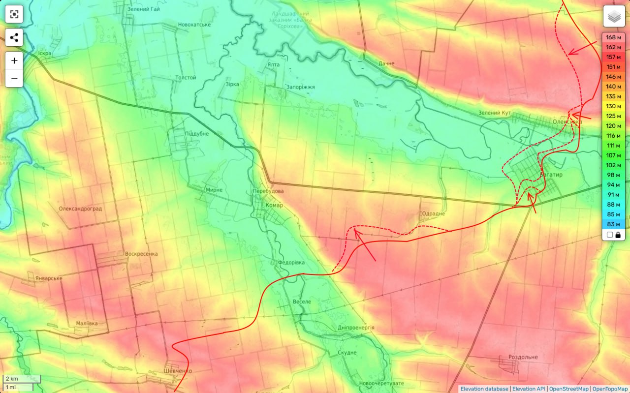 После потери Отрадного противнику придется довольно быстро оттягиваться в треугольник сел на слиянии Волчьей и Мокрых Ял Звезда-Запорожье-Ялта.