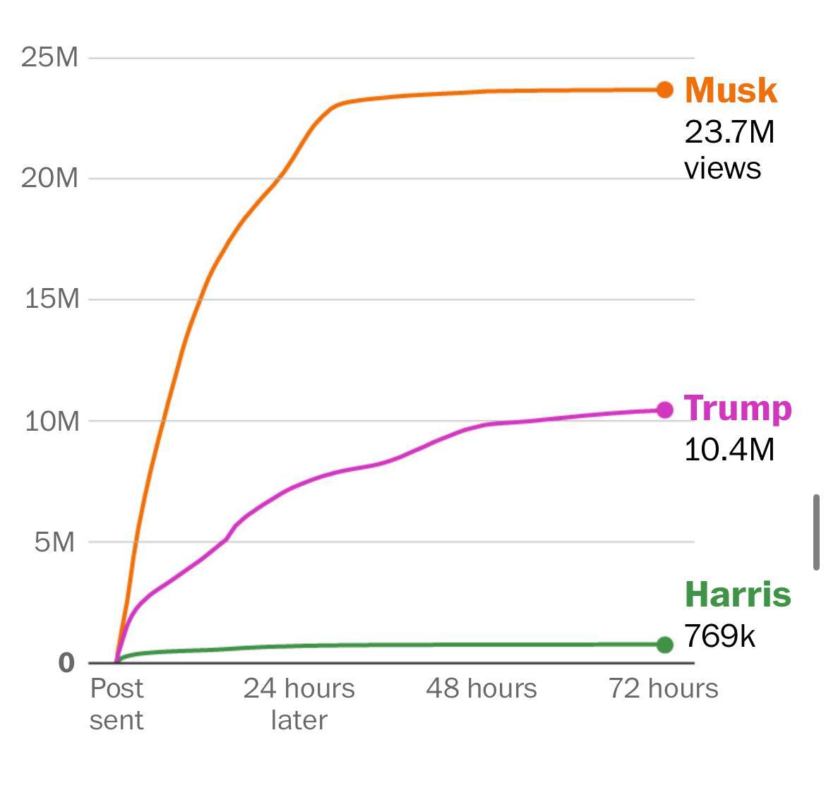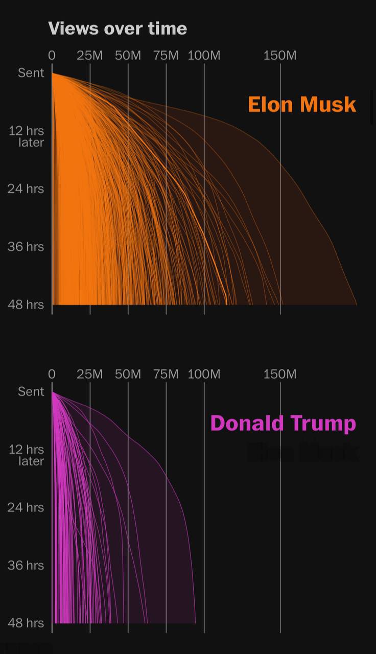 Π‘ ΠΈΡΠ»Ρ 2024 Π³ΠΎΠ΄Π° ΠΏΡΠ±Π»ΠΈΠΊΠ°ΡΠΈΠΈ ΠΠ»ΠΎΠ½Π° ΠΠ°ΡΠΊΠ° Π² ΡΠΎΡΠΈΠ°Π»ΡΠ½ΠΎΠΉ ΡΠ΅ΡΠΈ X Π½Π°Π±ΡΠ°Π»ΠΈ 133 ΠΌΠ»ΡΠ΄ ΠΏΡΠΎΡΠΌΠΎΡΡΠΎΠ² β Π² 15 ΡΠ°Π· Π±ΠΎΠ»ΡΡΠ΅, ΡΠ΅ΠΌ Ρ Π’ΡΠ°ΠΌΠΏΠ°, ΠΈ Π² 16 ΡΠ°Π· Π±ΠΎΠ»ΡΡΠ΅, ΡΠ΅ΠΌ ΡΡΠΌΠΌΠ°ΡΠ½ΡΠΉ ΠΎΡ Π²Π°Ρ Π°ΠΊΠΊΠ°ΡΠ½ΡΠΎΠ² Π½ΠΎΠ²ΠΎΠ³ΠΎ ΡΠΎΡΡΠ°Π²Π° ΠΠΎΠ½Π³ΡΠ΅ΡΡΠ°.