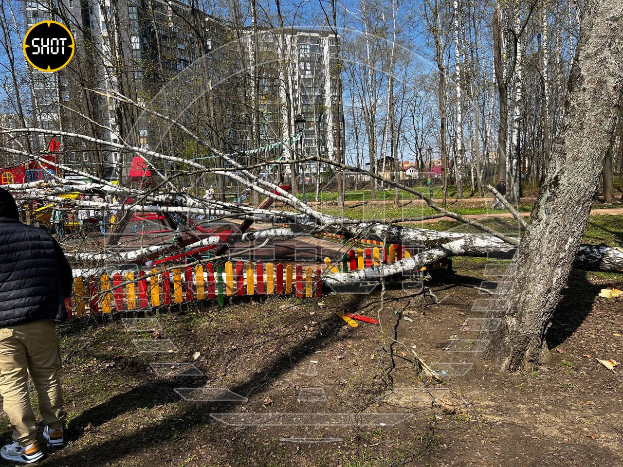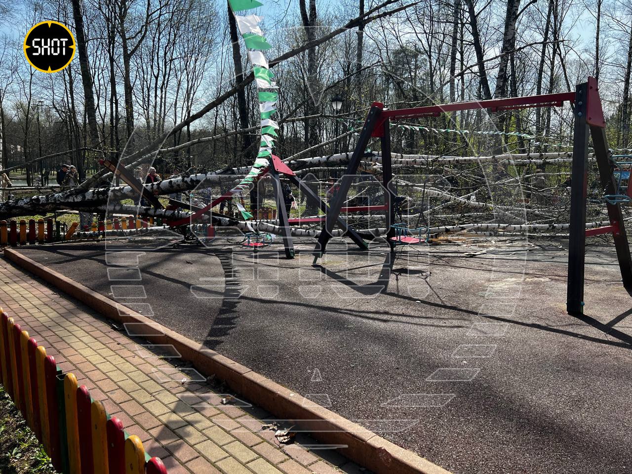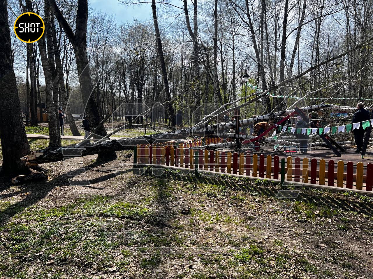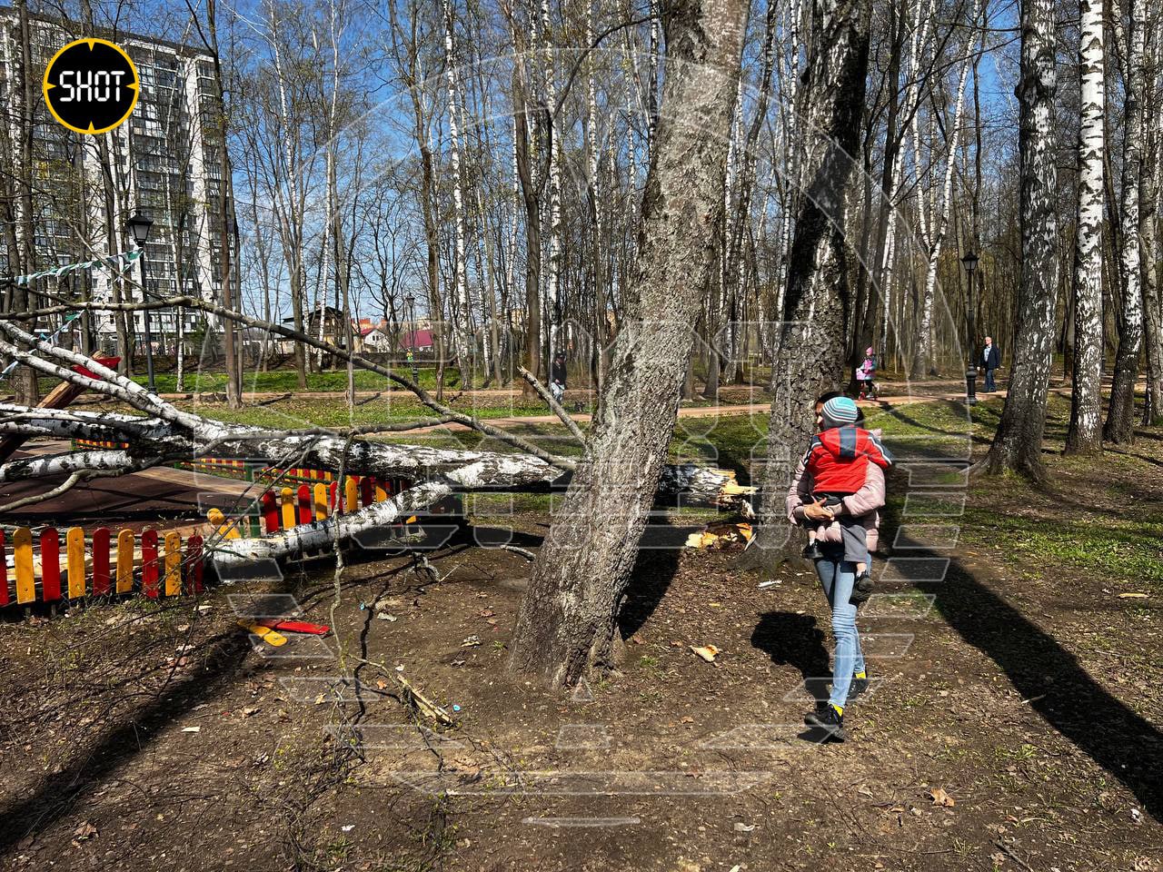 Дерево рухнуло на площадку и едва не убило двухлетнюю девочку, которая гуляла с родителями в парке в Красногорске. Её госпитализировали с внутричерепной травмой.