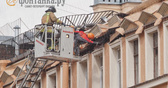 Ночью, напомним, там произошло новое обрушение, после чего стала видна огромная зияющая дыра. Провалились части внутренних конструкций и крыши, фасадная стена стоит, но разрушения на ней видны невооруженным глазом.