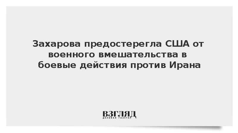 Москва предостерегает Вашингтон от вмешательства в боевые действия против Ирана, передает ТАСС. Официальный представитель МИД России Мария Захарова заявила, что такой шаг стал бы крайне опасным и чреватым непредсказуемыми негативными последствиями.