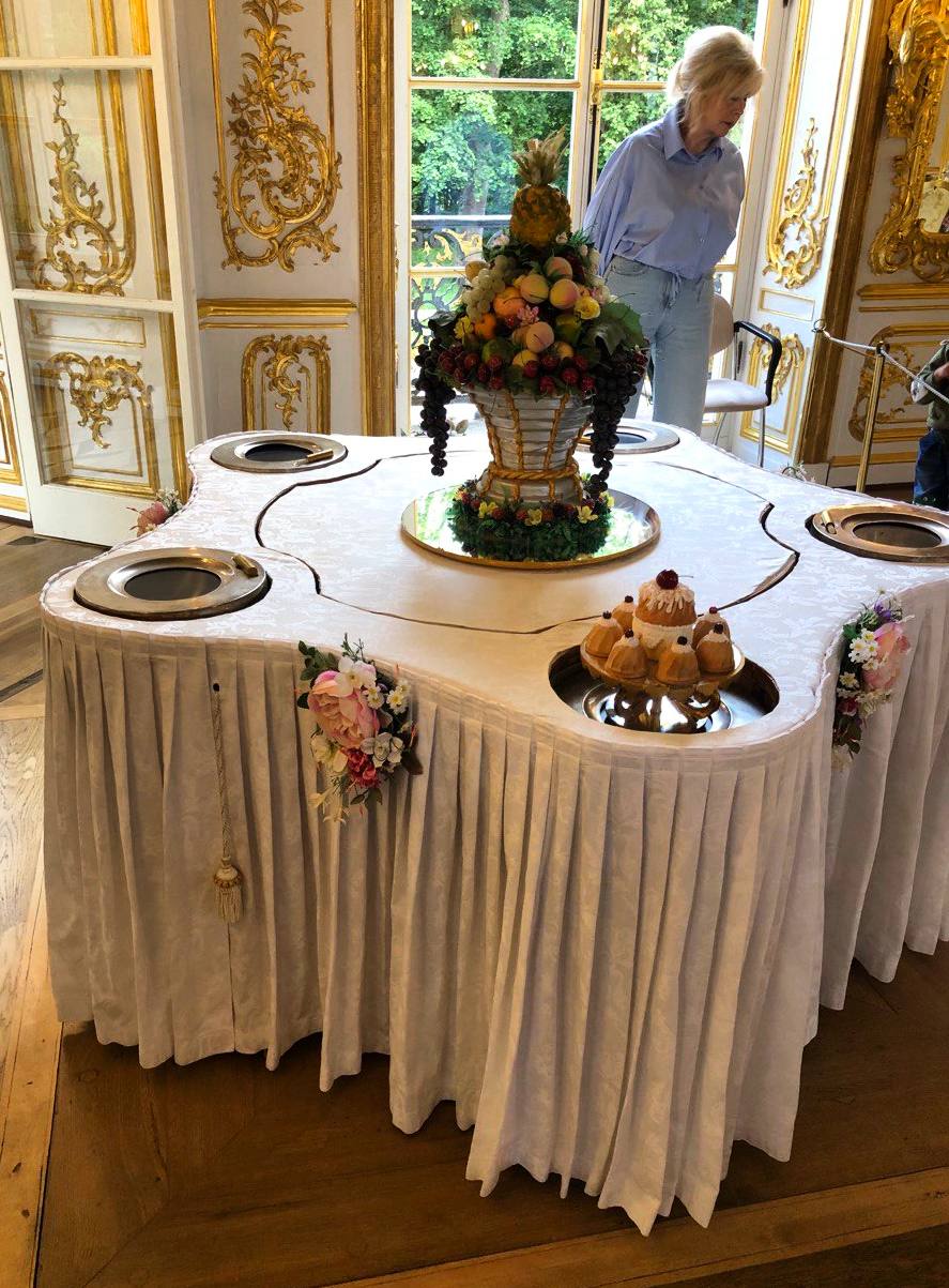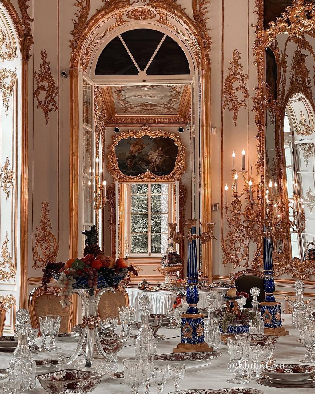А самое интересное- это чудо механизм в доме. Накрытый стол поднимался из-под пола, каждый гость мог заказать себе блюдо с помощью записи на грифельной доске. После застолья столы опускались вниз и зал превращался в танцплощадку.