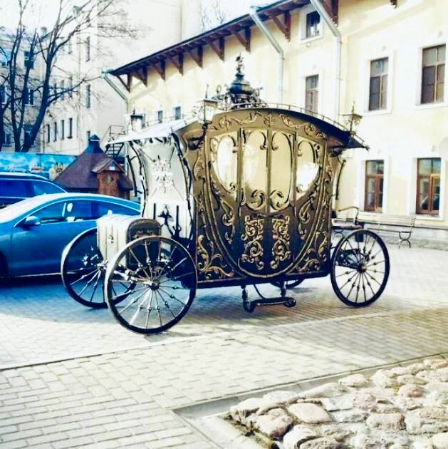 Эта карета с сундуком и сиденьем для кучера выполнена по образцу экипажа XVII века. Макет составлен из стальных прутов, так что вес всей конструкции при всей внешней хрупкости составляет почти целую тонну. ⠀ Карета была заказана владельцем близлежащей гостиницы, которому наскучили автомобили, портящие своим видом историческую атмосферу места.