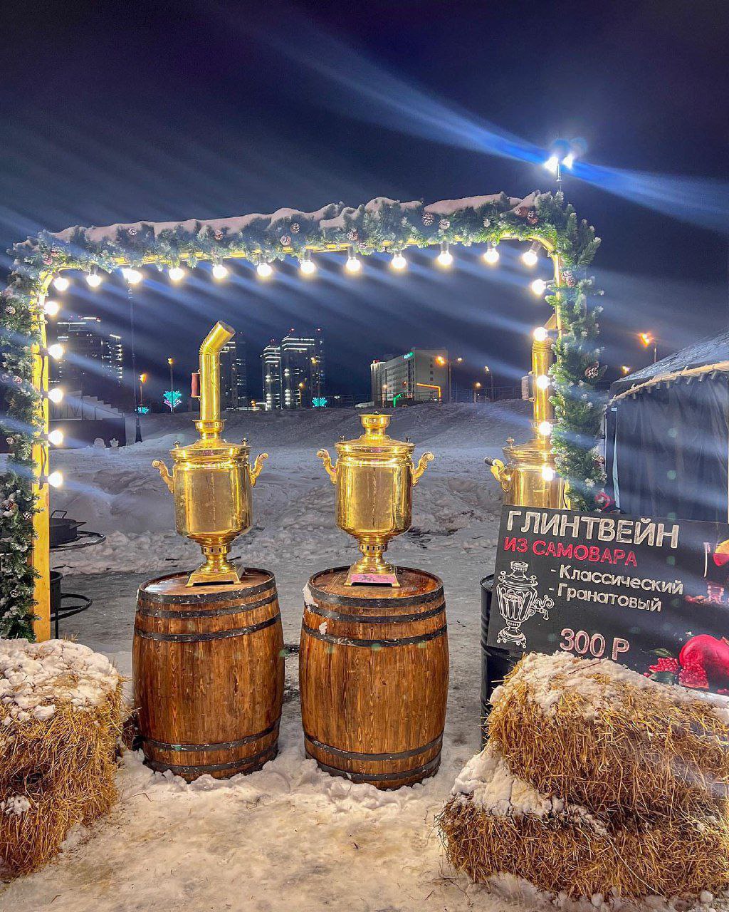 Главная городская 35-метровая ёлка уже радует своим светомузыкальным шоу у Центра семьи «Казан». В ёлочном городке представлены торговые ряды, где можно выпить безалкогольный глинтвейн, поесть блюда татарской кухни, шашлык и т.д.