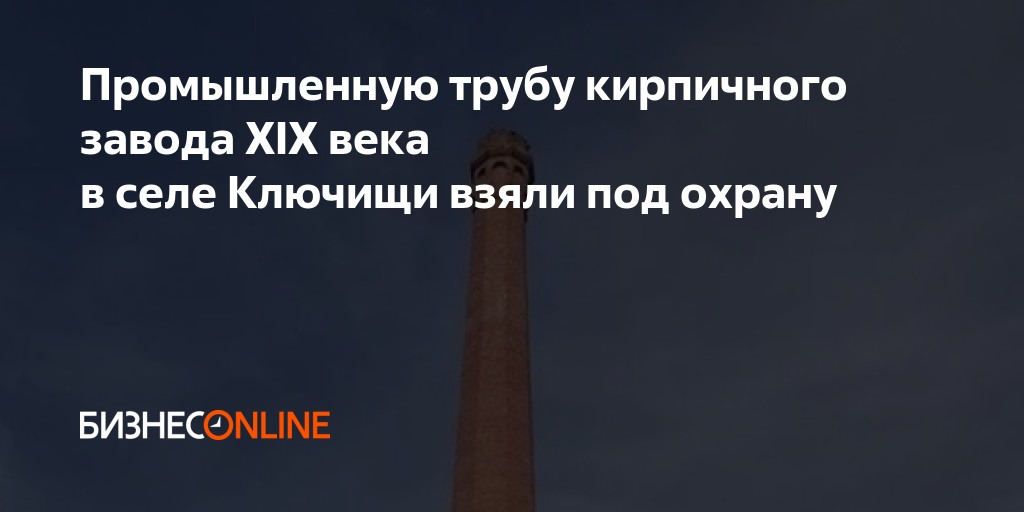 Промышленную трубу кирпичного завода XIX века в селе Ключищи взяли под охрану. Такое решение принял комитет РТ по охране объектов культурного наследия. Об этом сообщает пресс-служба ведомства у себя в «Инстаграме».