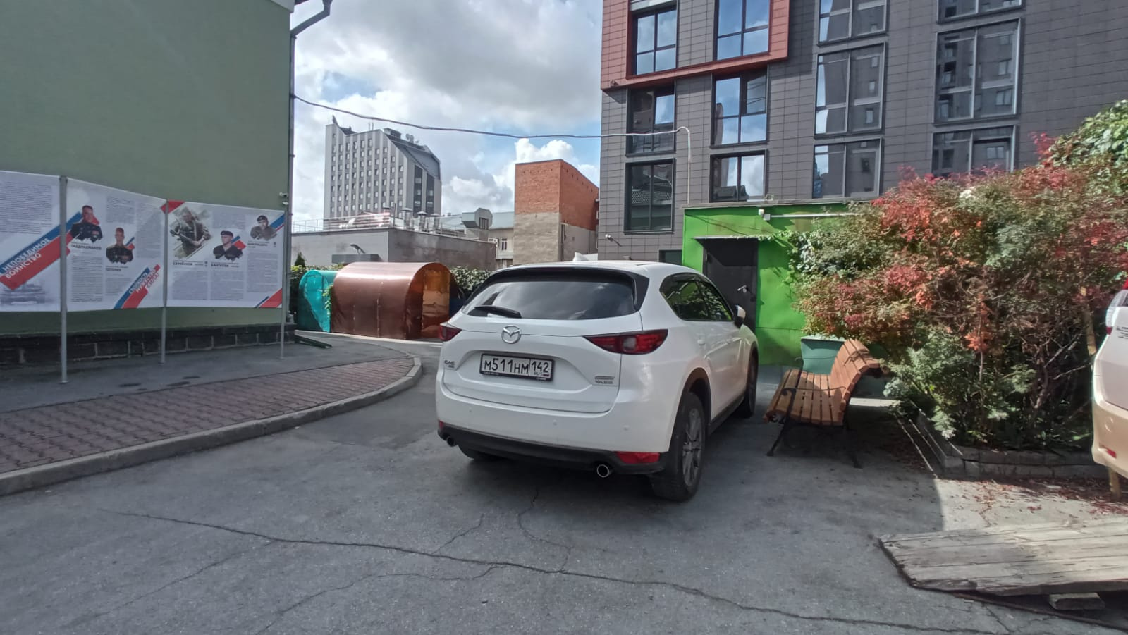 Наконец, оригинальный хам. Водитель белоснежной «Мазды» бросил авто, припарковавшись очень близко к стоящей во дворе скамейке. Присесть на неё невозможно, разве что только прилечь.