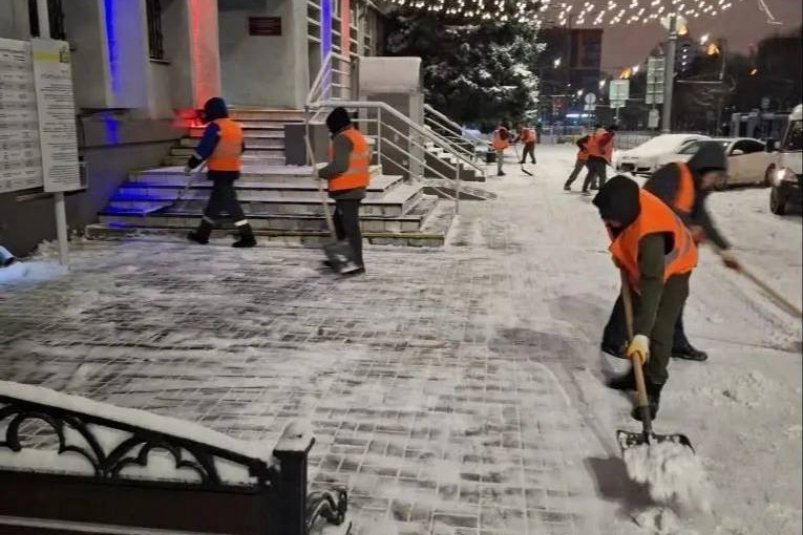 Параллельно ведётся очистка пешеходных зон: тротуаров, остановок, переходов и территорий возле школ, больниц и детских садов. Днём к работе привлекут более 620 человек и 29 единиц техники.