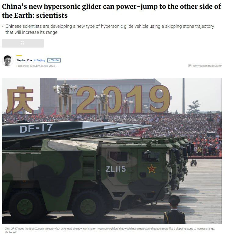 Издание South China Morning Post о главных особенностях нового типа гиперзвукового оружия: