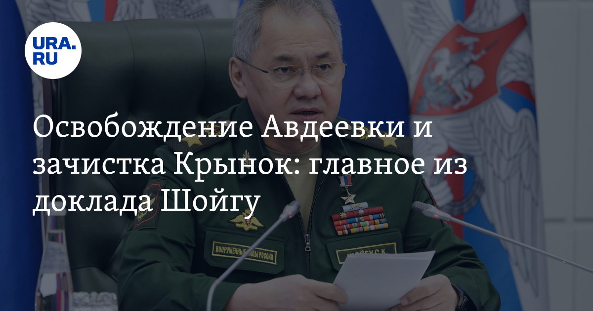 Министр обороны РФ Сергей Шойгу доложил главе государства Владимиру Путину подробности операции по взятию Авдеевки. Он заявил, что Генштабу удалось взять город с минимальными потерями, а также подчеркнул, что ВС РФ освободили 72 квадратных километра. Ход встречи опубликовали на сайте Кремля. О чем беседовал Шойгу с Путиным — в материале URA.RU.