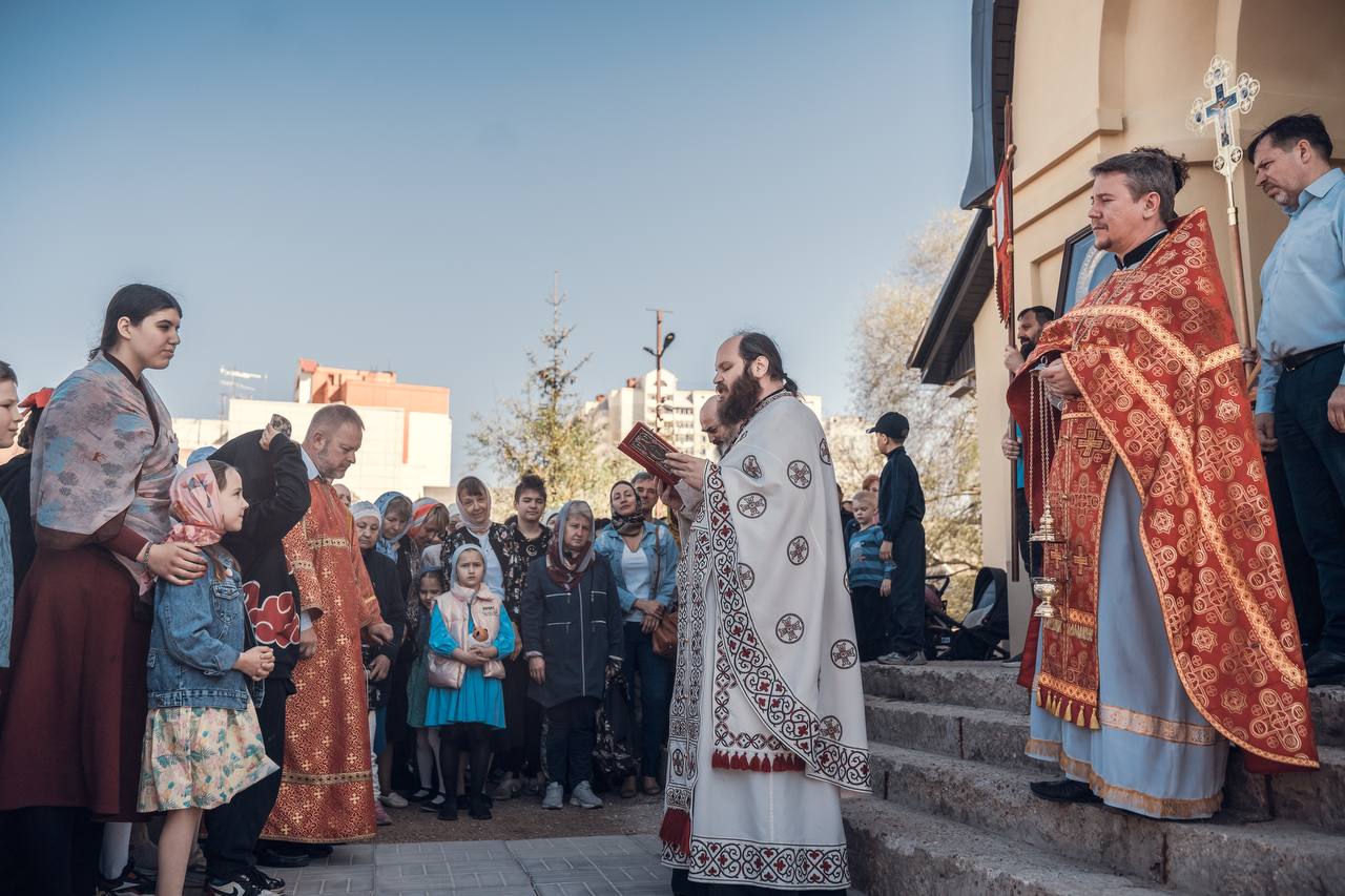 У нашего прихода сегодня престольный праздник, так как нижний храм назван в честь святых жен-мироносиц. Поэтому сегодня был Крестный ход после праздничного богослужения, что естественно всегда является дополнительной радостью для всех прихожан.